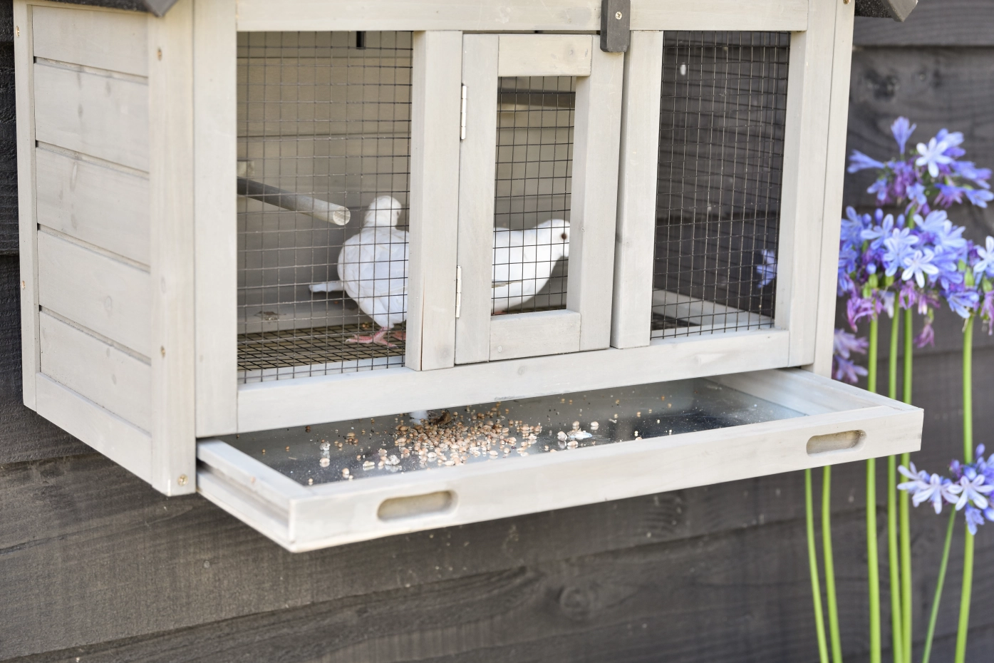 - Uitschuifbare mestlade om de volière handig schoon te maken